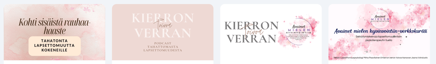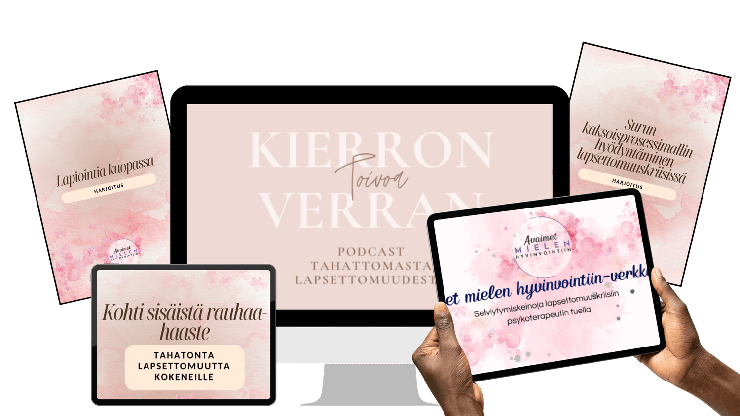 Avaimet mielen hyvinvointiin-verkkovalmennuksen sekä kaiken muun sisäpiiriin kuuluvan aineiston ovat koostaneet lapsettomuuspsykologi Mirka Paavilainen ja Kierron verran toivoa-podcastista tuttu Jaana Vaholuoto.